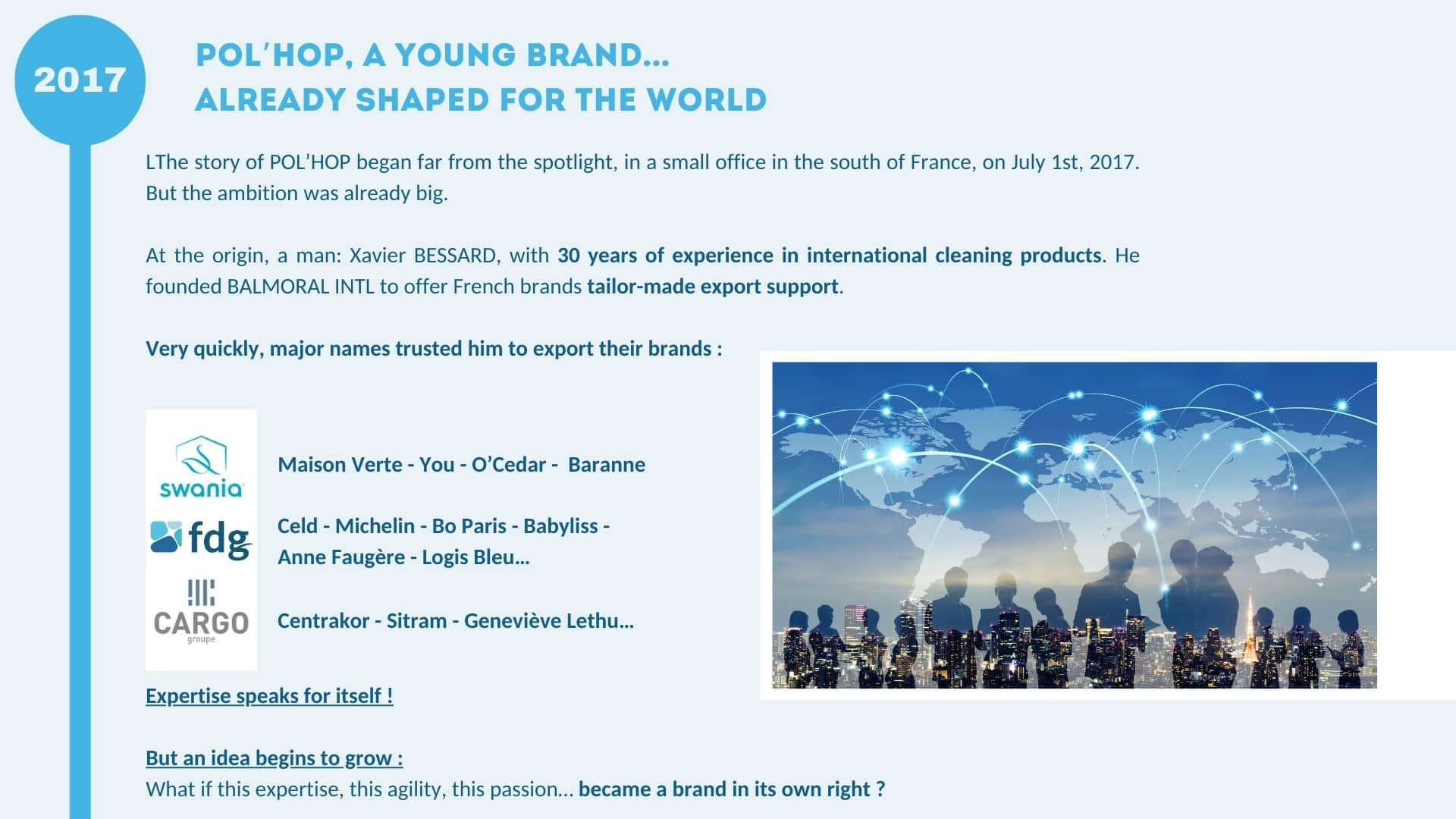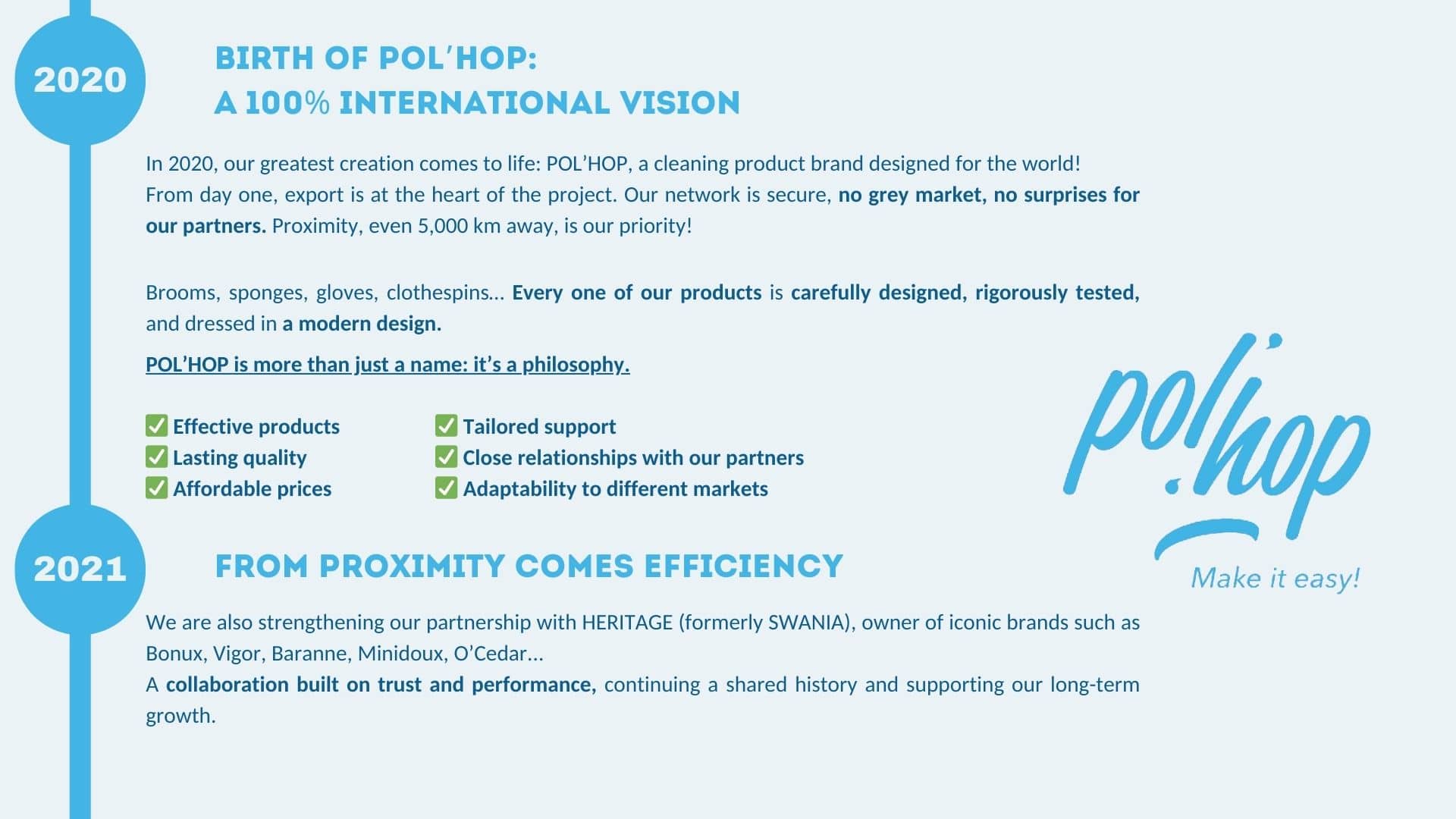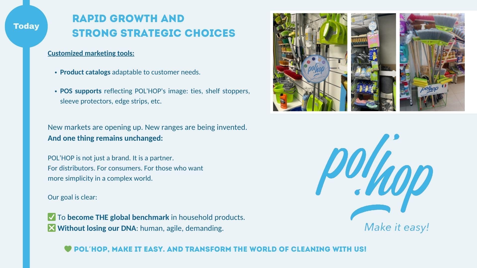 POL’HOP is a brand of the BALMORAL INTL group, based in Écully near Lyon. We are cleaning experts offering a complete range of products. POL’HOP is present in more than 50 countries around the world and is the market leader in Africa.